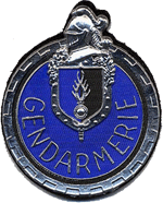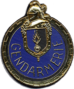 Description héraldique: Rondache d'azur à la bordure d'or chargée d'un sycamor denté du même à l'orle de sable, timbrée d'un écusson aux couleurs et symboles de la gendarmerie nationale accompagné du nom "GENDARMERIE" en capitale du premier métal |